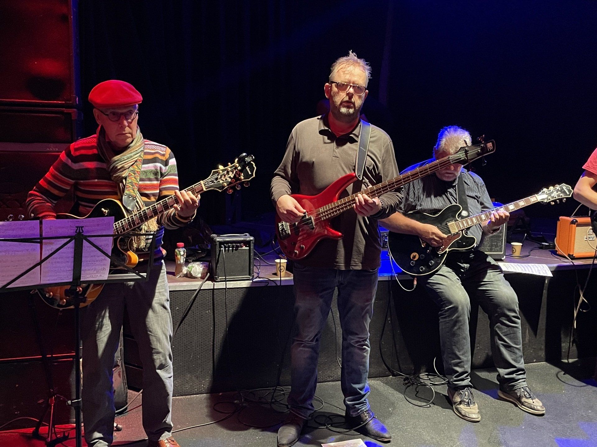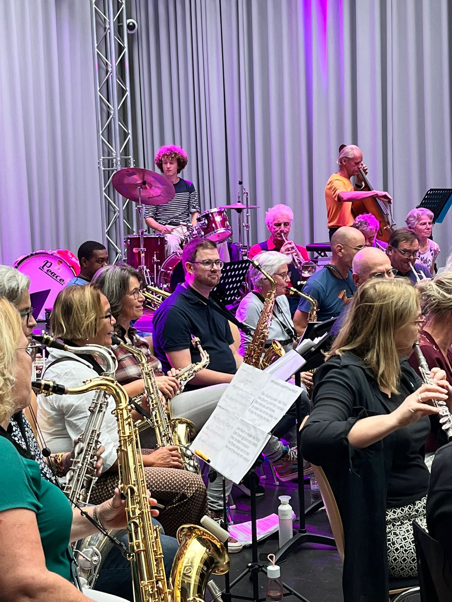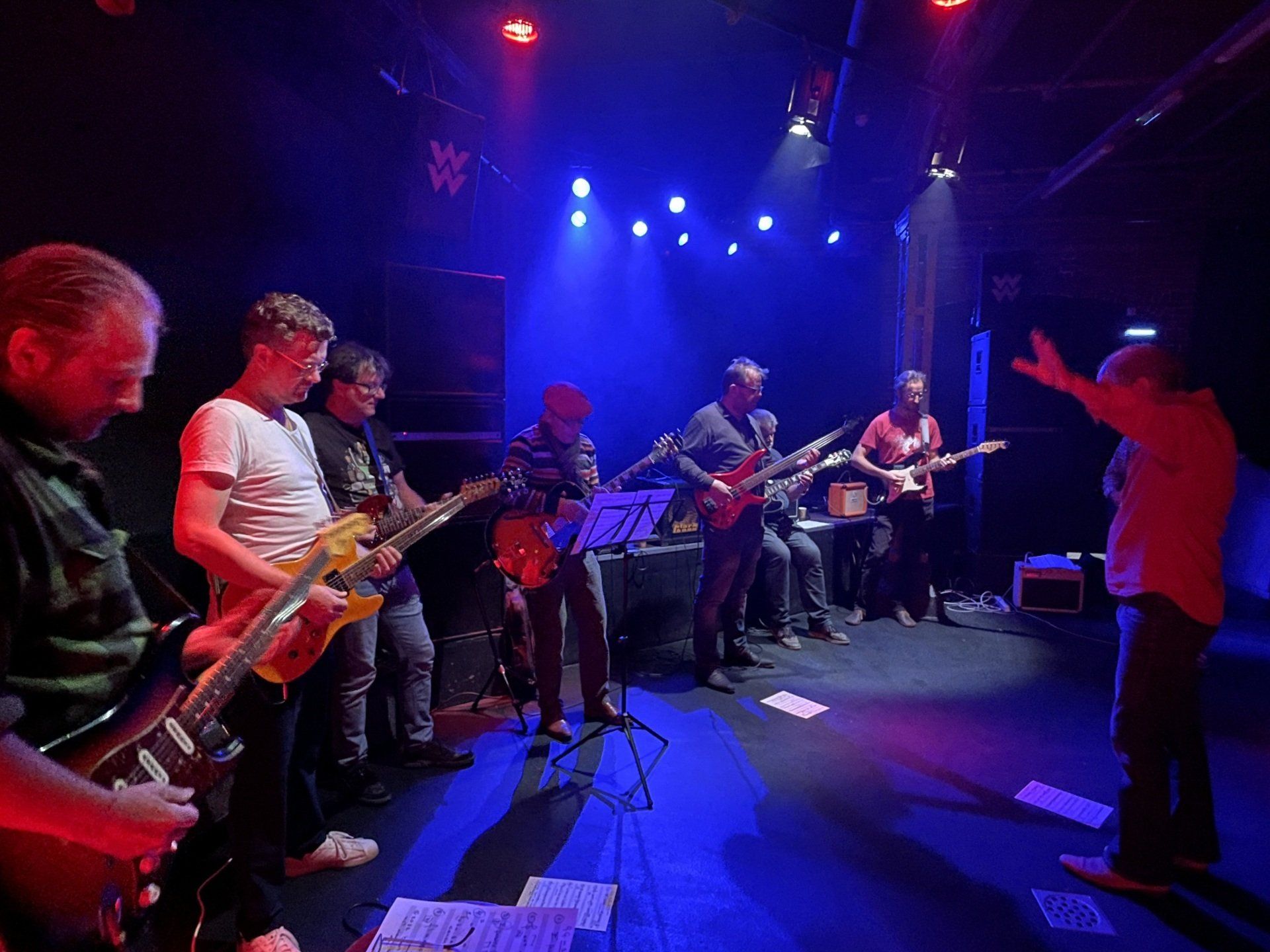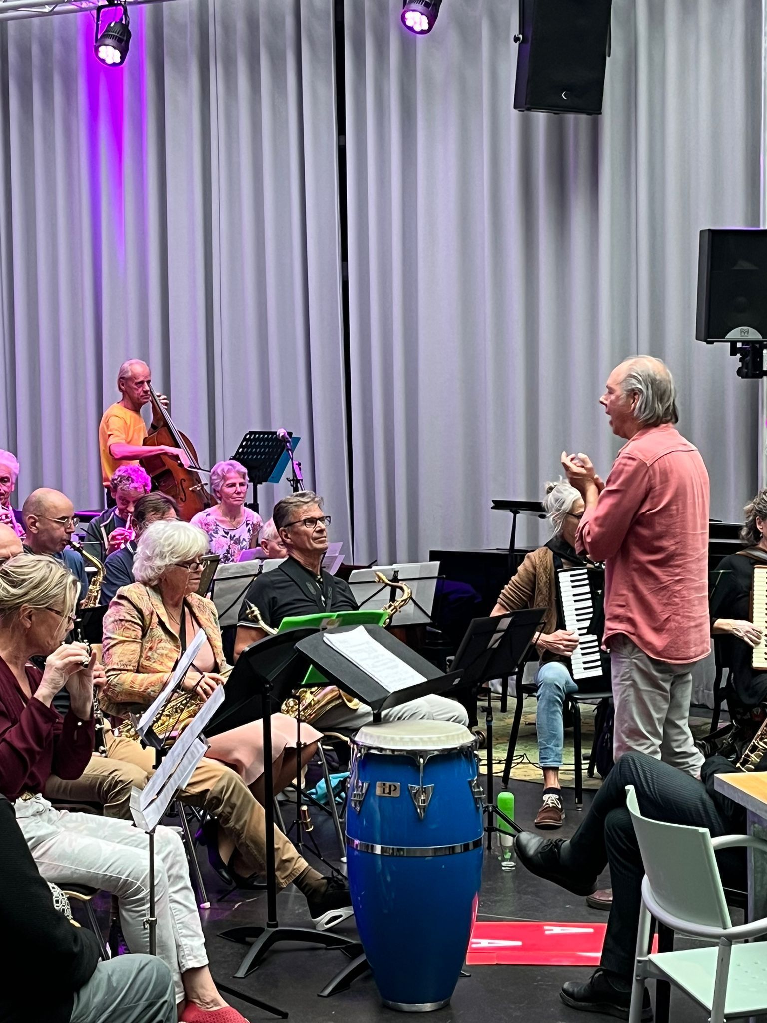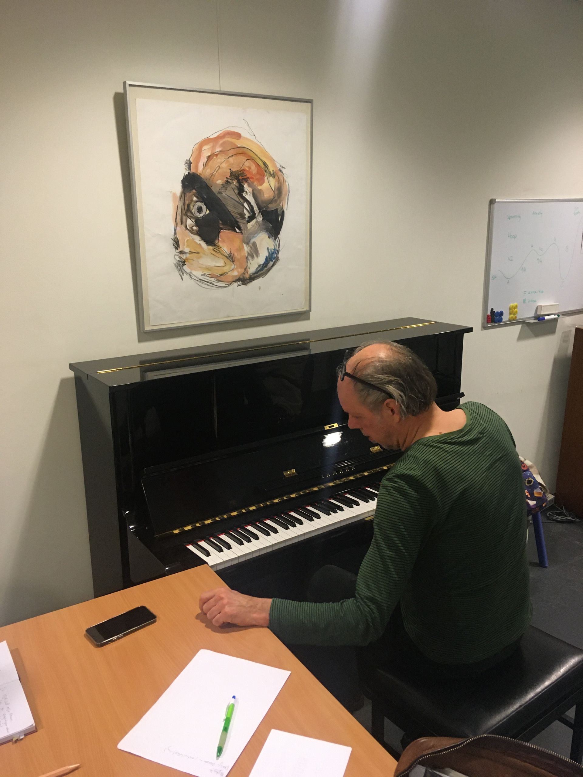 Bart van Dongen repeteert de groep een aantal eenvoudige thema’s die ter plekke vervlochten worden tot een geheel.