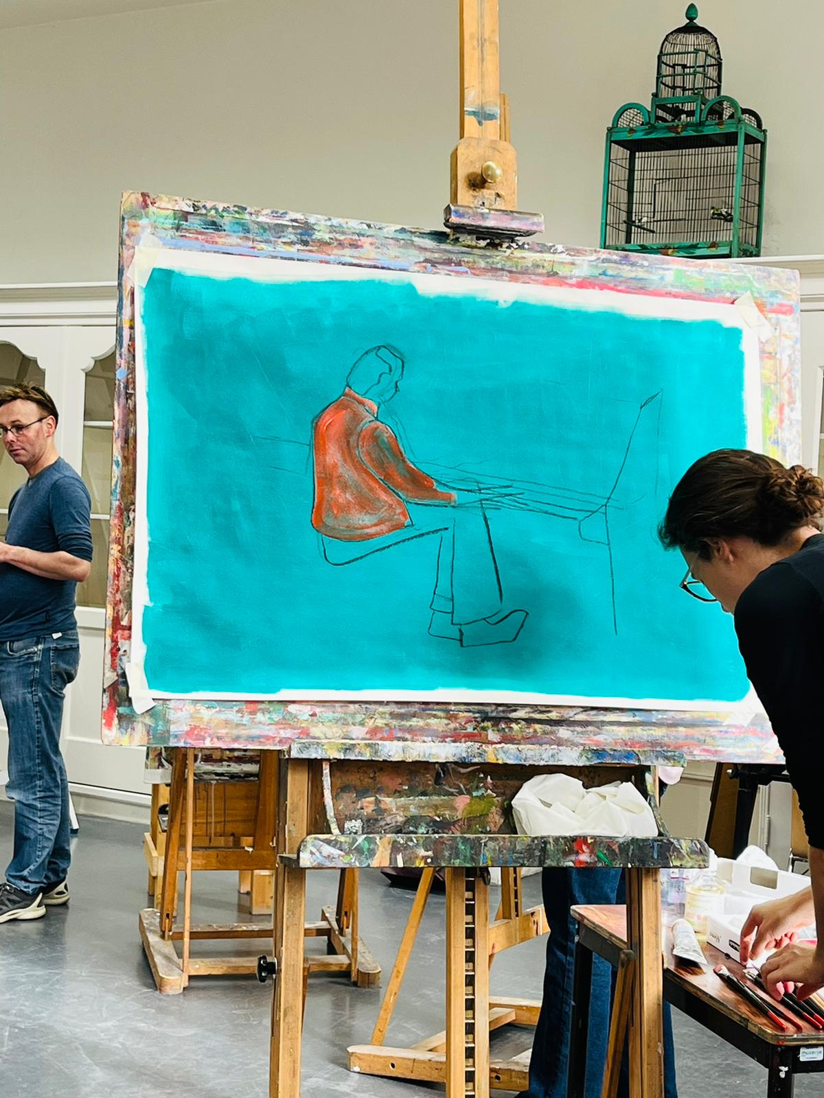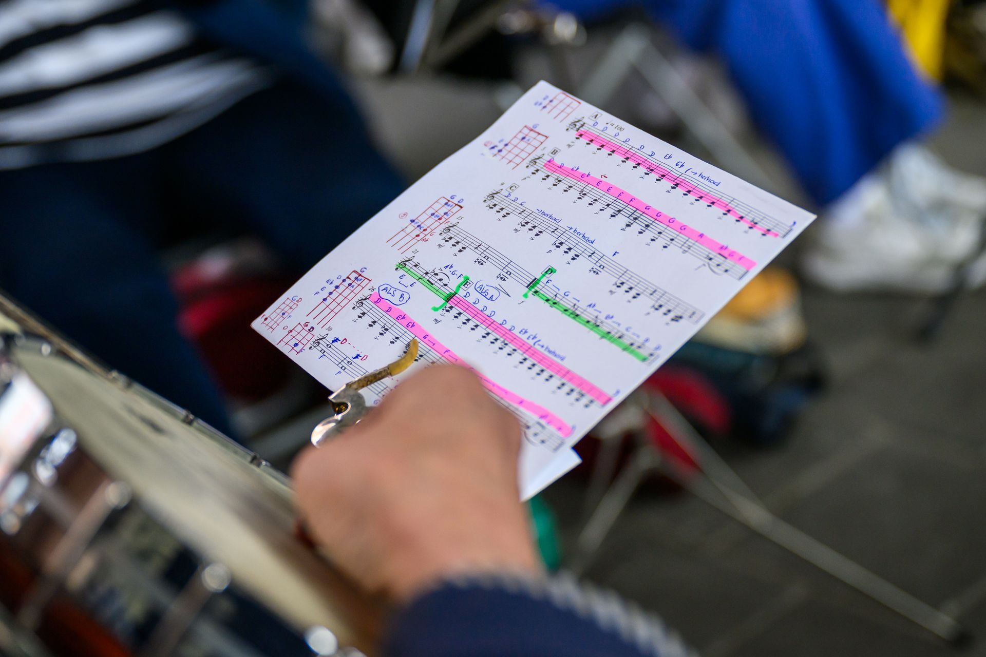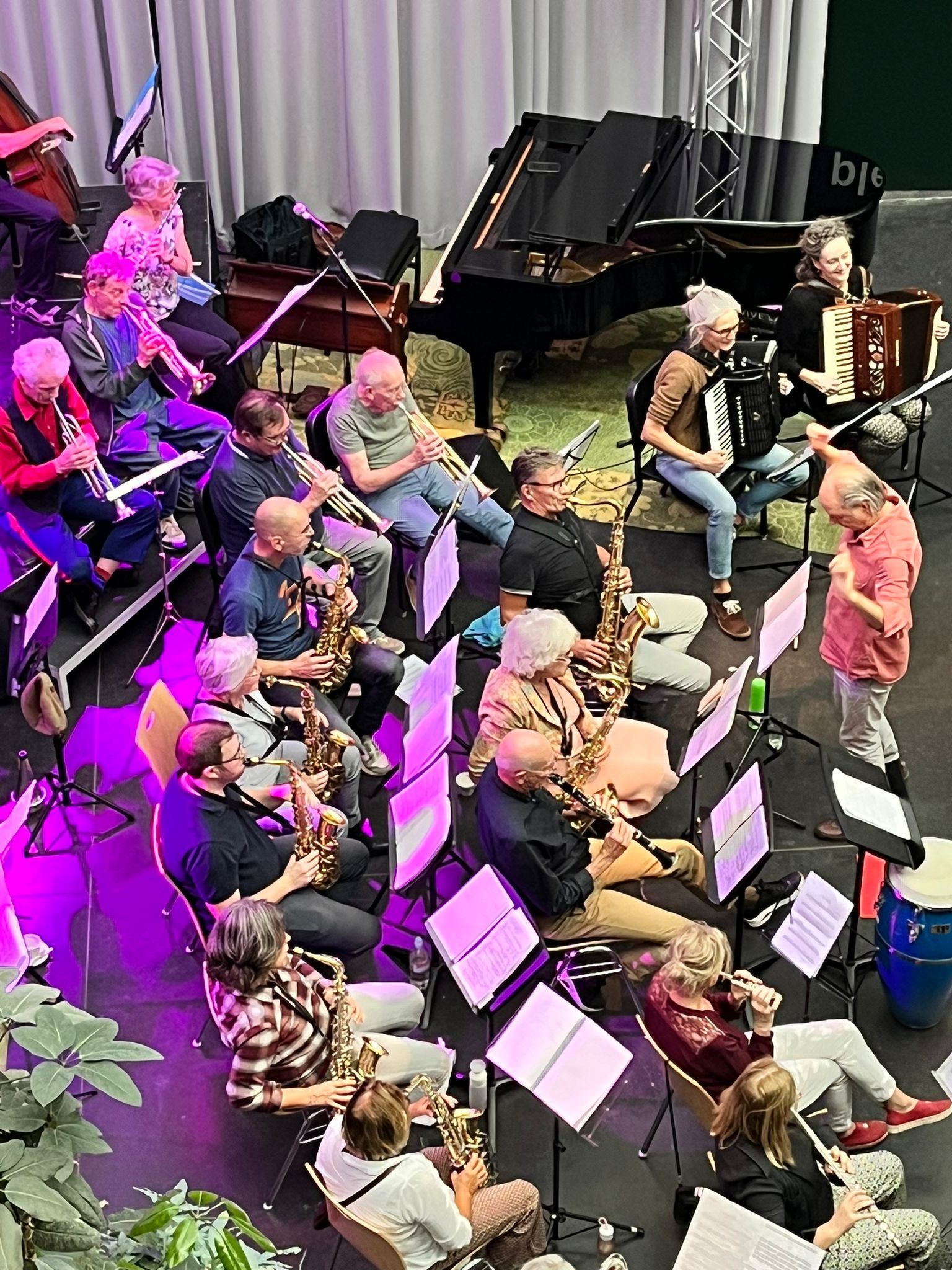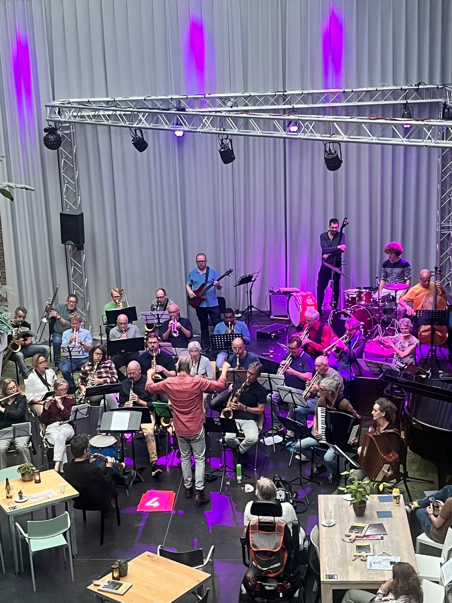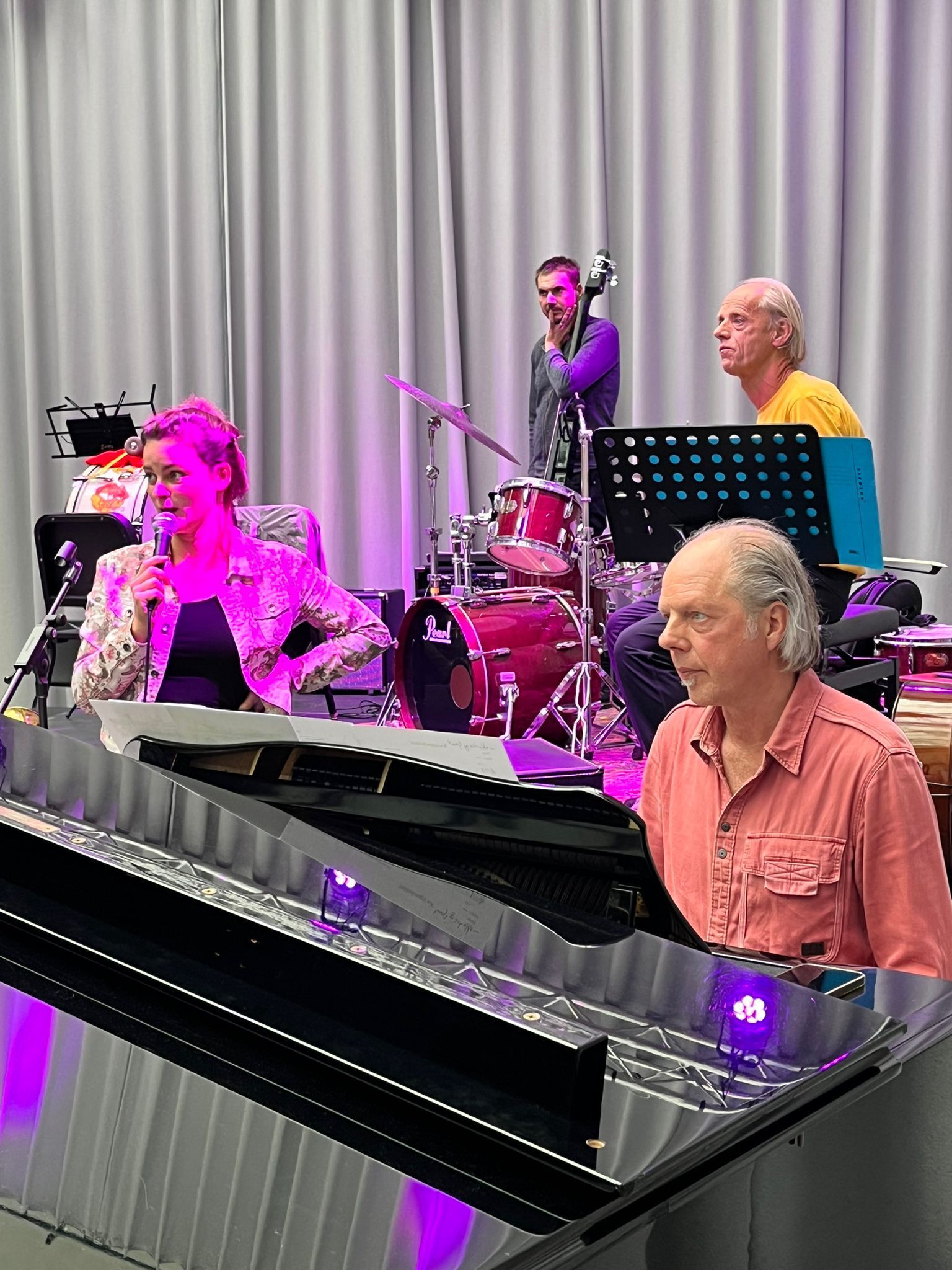 Bart van Dongen repeteert de groep een aantal eenvoudige thema’s die ter plekke vervlochten worden tot een geheel.