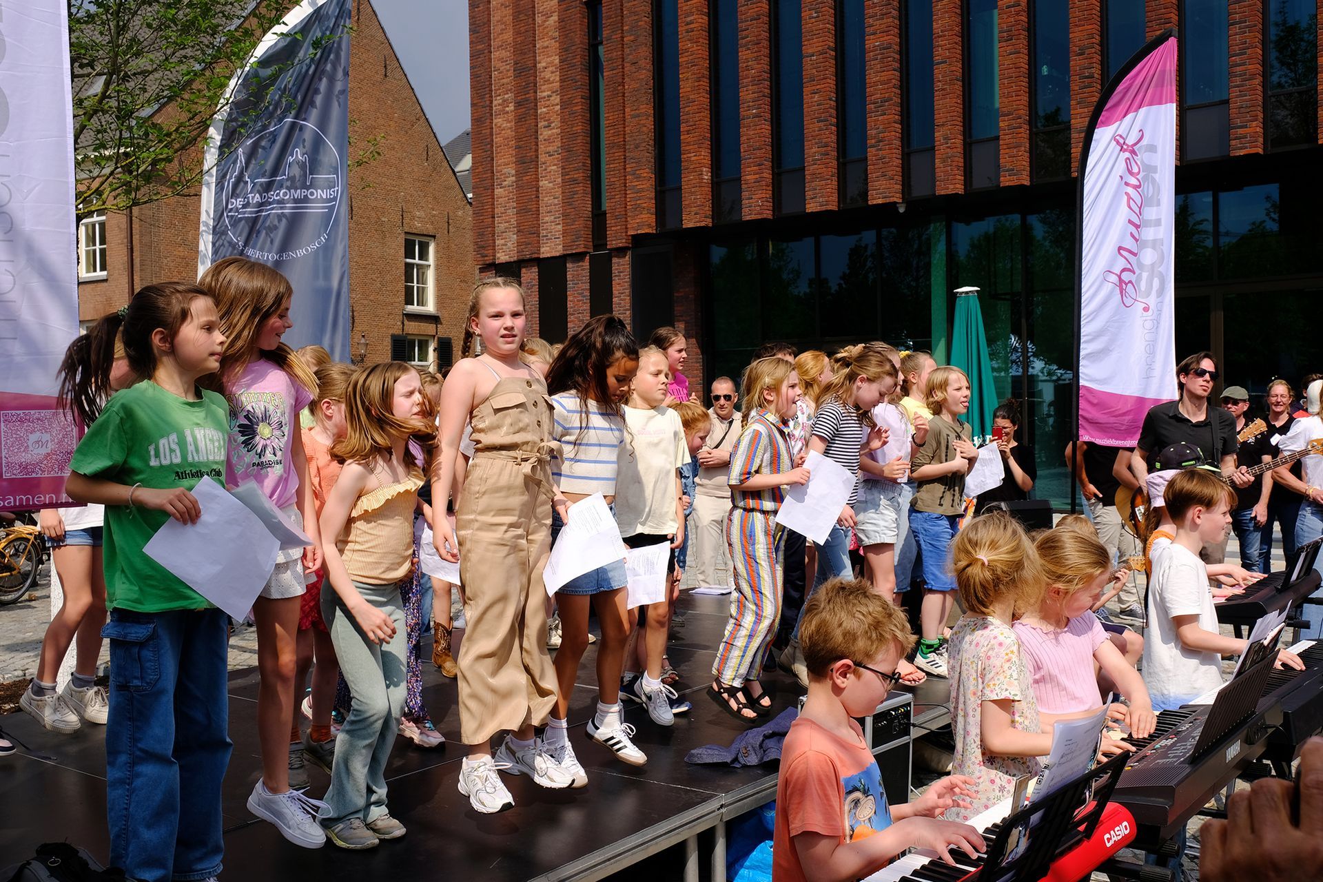 Op zaterdag 18 mei schalde 'Liedjes brengen je overal' over de Parade. Voorbereid en uitgevoerd door een jonge muziekgroep van 40 kinderen uit groep 1 t/m 8 van Kindcentrum De Kameleon. Met begeleiding van juf Roos Braam, Stichting Opus Leo en met Bart als componist en dirigent. Er werd ook gedanst. Applaus!