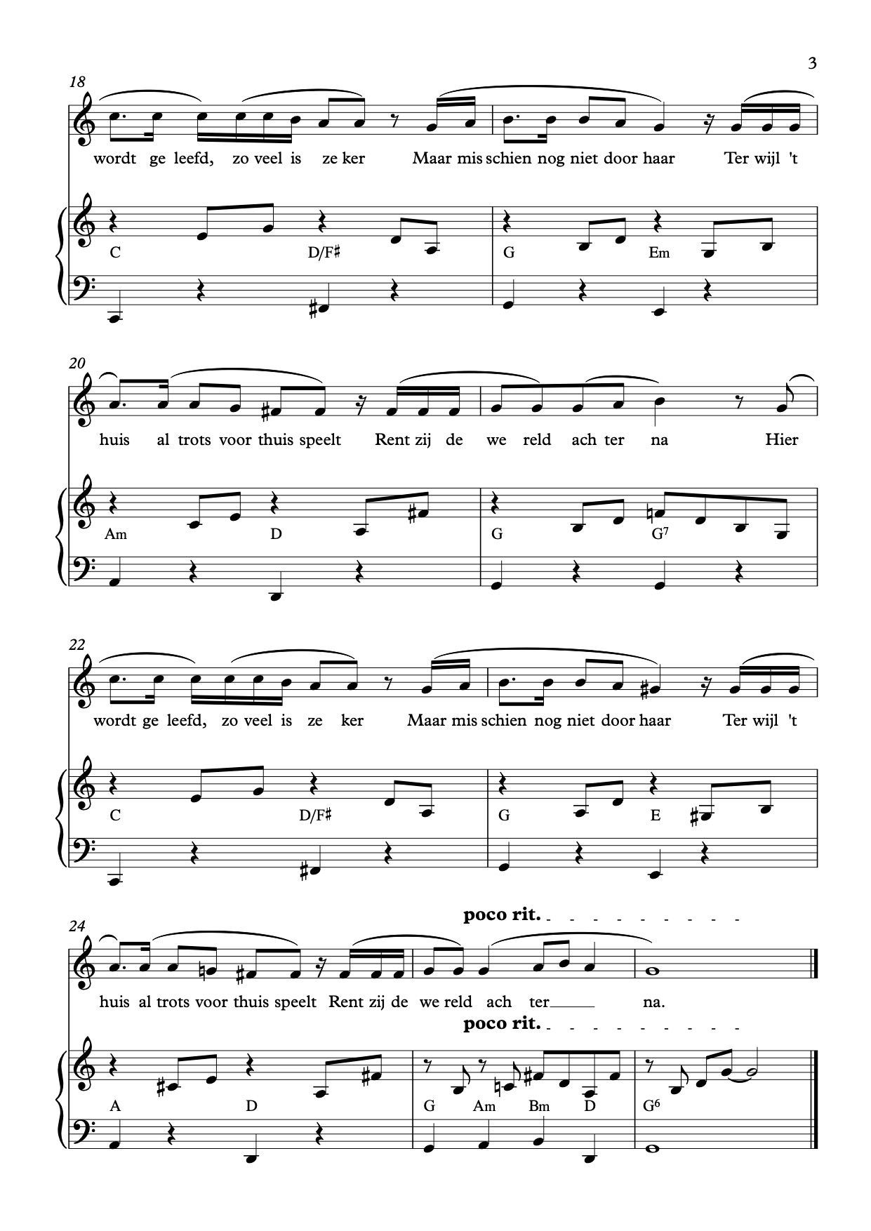 Hieronder vind je de door Lieve van Tuijl ingezongen orkestversie, een uitvoering met piano en met orkest.