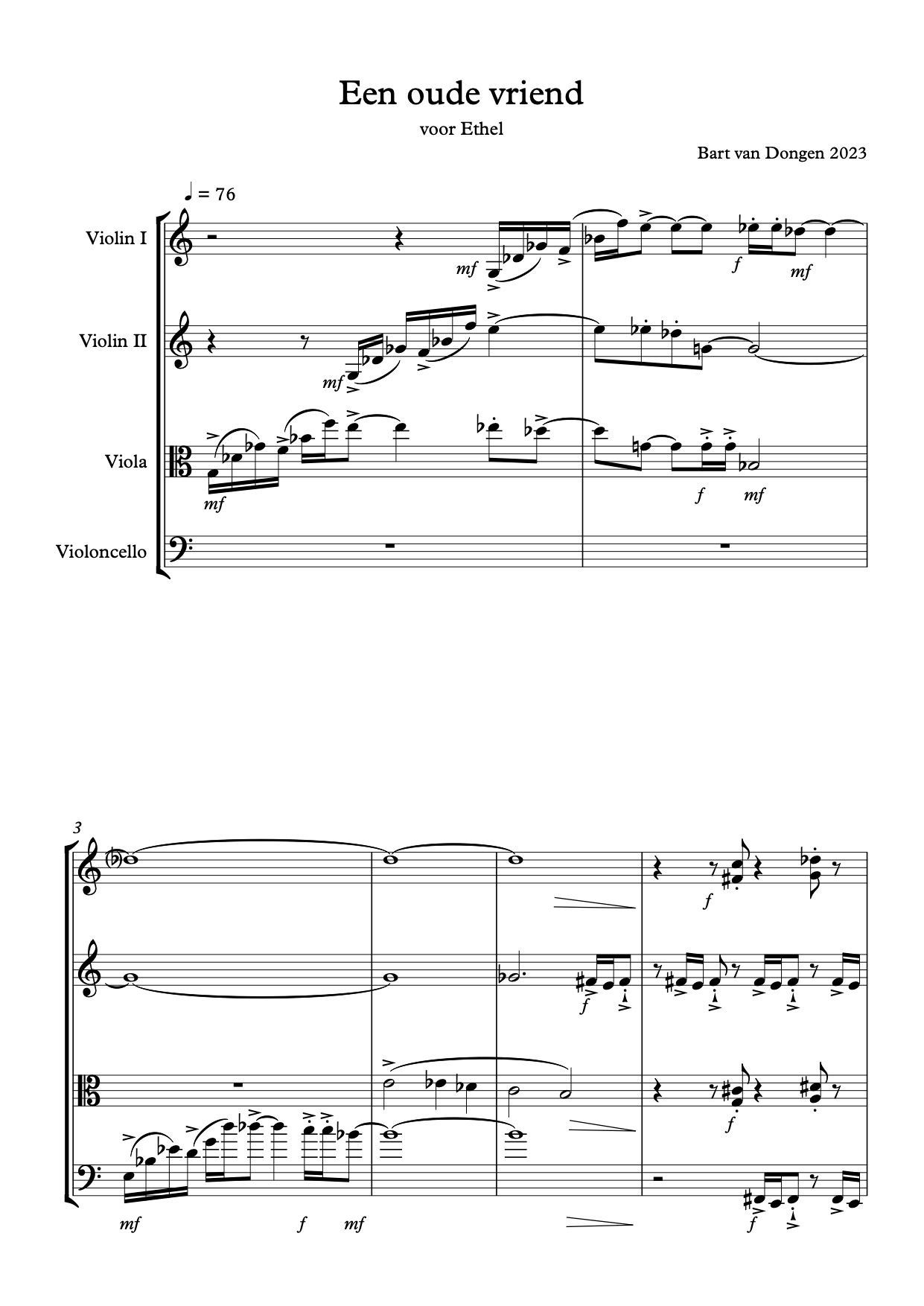 Het 14e maandstuk heet ‘Een oude vriend’. Het stuk is geschreven voor het Amerikaanse Strijkkwartet Ethel en is uitgevoerd in de Willem Twee Toonzaal in 's-Hertogenbosch.