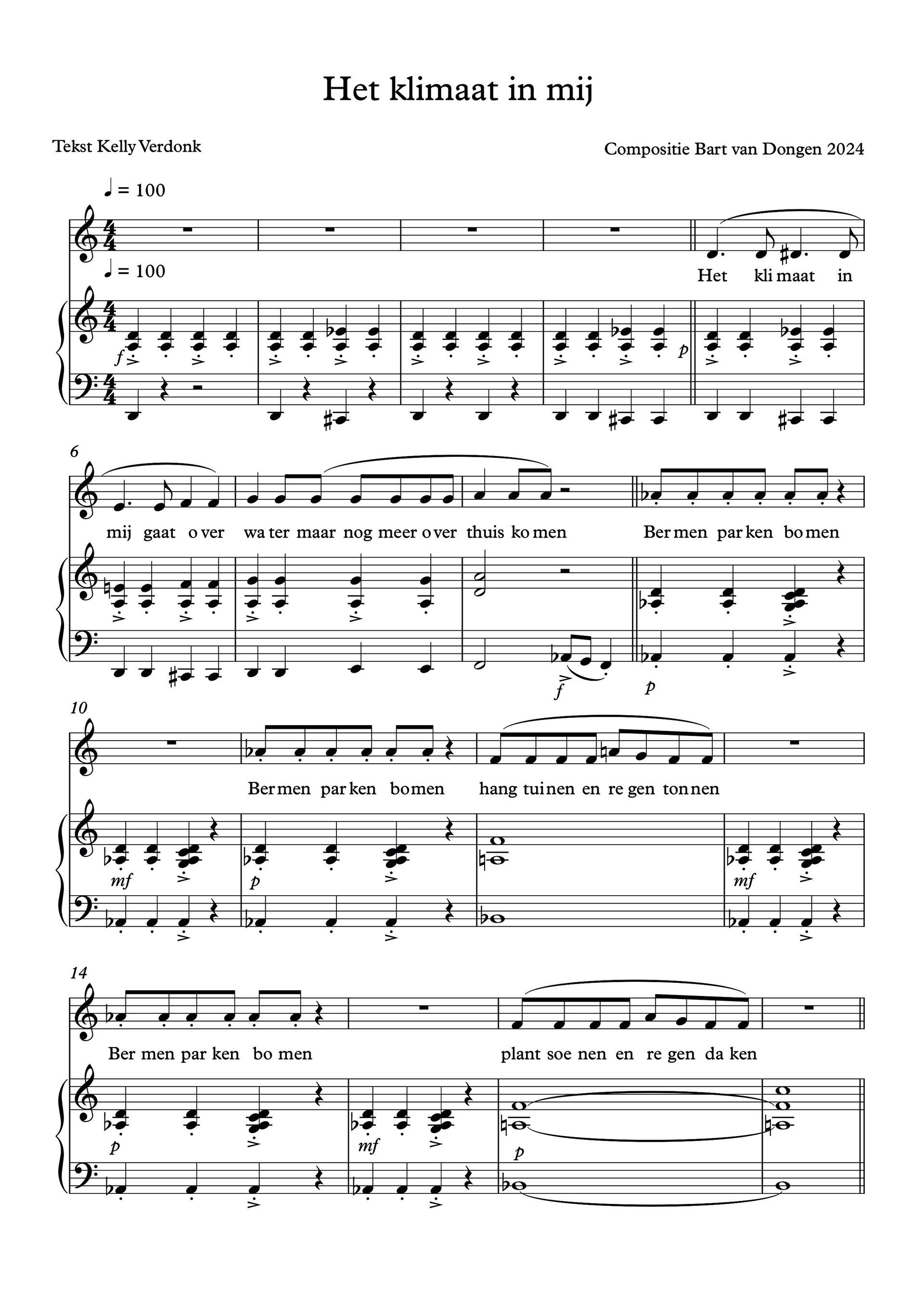 Het maandstuk van juni heet 'Het klimaat in mij'. Het is de liedversie van het stuk dat ik schreef en uitvoer op de Dag van de Componist op 15 juni, op het stationsplein van Den Bosch. De tekst is van Kelly Verdonk, stadsdichter van ’s-Hertogenbosch.